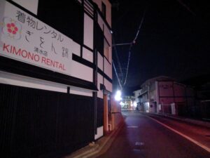 お寺の後ろの山の方に明るい陽の光が見え始め
